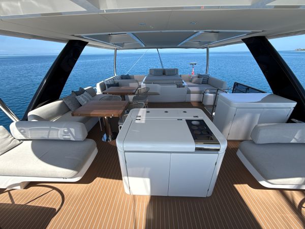 - Diğer FLYBRIDGE İÇİN TAM ŞEFFAF (CLEAR) KAPAMA. FLYBRIDGE CAMLARI İÇİN GÜNEŞLİKLER. FLYBRIDGE YAN VE ARKA DİKEY GÜNEŞLİKLERİ. • TAM KIÇ KOKPİT ŞEFFAF (CLEAR) KAPAMA, KOKPİT İÇİN YAN VE ARKA DİKEY GÜNEŞLİKLER. • FLYBRIDGE DÜMEN KONSOLLARI VE VİNÇLER İÇİN TAM KILIF SETİ, FLYBRIDGE VE KOKPİT MASALARI İÇİN KILIF SETİ, TÜM DIŞ MEKAN MİNDERLERİ İÇİN KOMPLE KILIF SETİ. • BAŞ GÜVERTE GÖLGELİK TENTESİ. ÖN KOKPİT GÖLGE TENTESİ, KIÇ YAN KANAT TENTESİ.MIELE BEYAZ EŞYA PAKETİ – MİKRODALGA FIRIN, FIRIN, 4 GÖZLÜ İNDÜKSİYON OCAK, BULAŞIK MAKİNESİ, ÇAMAŞIR/KURUTMA KOMBO MAKİNESİ VE SANCAK BAŞ PİK WORKSHOP ALANINDA AYRI ÇAMAŞIR MAKİNESİ VE AYRI KURUTMA MAKİNESİ. • ÇİFT PASLANMAZ ÇELİK EVYE, ATIK ÖĞÜTÜCÜ (INCINERATOR) VE ANINDA SICAK SU MUSLUĞU. • MUTFAK SİNTİNE BÖLÜMÜNDE 105 ŞİŞE KAPASİTELİ, KLİMALI ŞARAPLIK